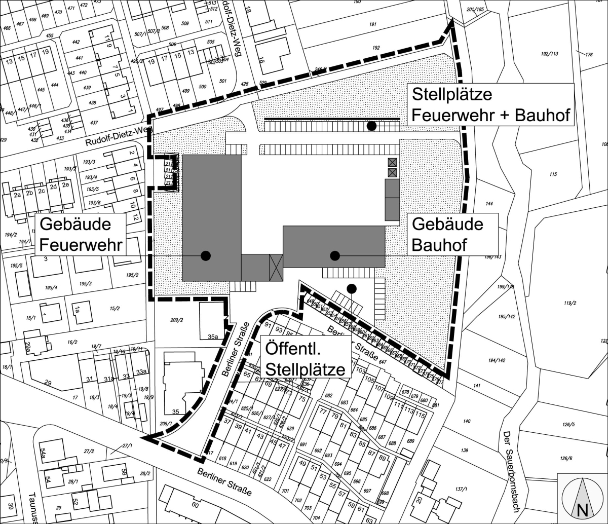 Flächen für den Gemeinbedarf mit den Zweckbestimmungen "Feuerwehr" und "Bauhof"